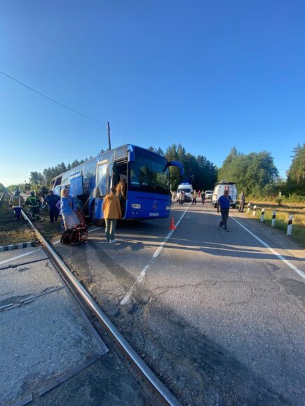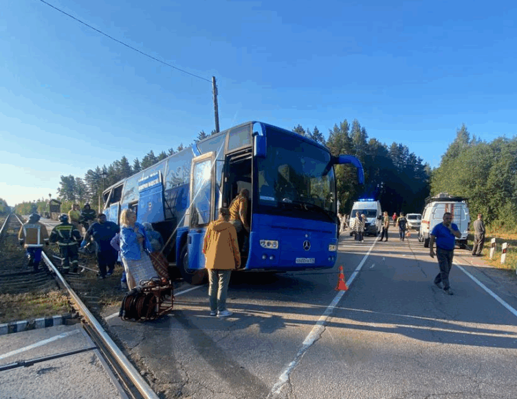Как сообщила пресс-служба ГУ МВД по Петербургу и Ленобласти, автобус с 37 туристами, ехавшими в монастырь Александра Свирского, пересекал регулируемый переезд на красный свет и не успел завершить маневр, когда железнодорожный состав врезался в его заднюю часть.