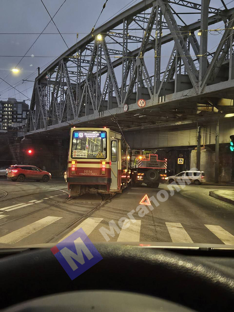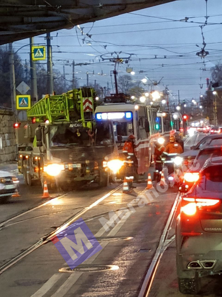 Автовышка и трамвай столкнулись утром 12 ноября на перекрестке 1-го Муринского и Лесного проспектов. Грузовик, ехавший по 1-му Муринскому, стал поворачивать на Лесной в сторону Кантемировской улицы не по правилам, из левого ряда, не пропустив попутный трамвай.