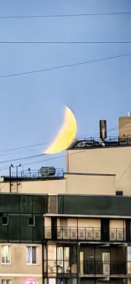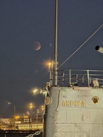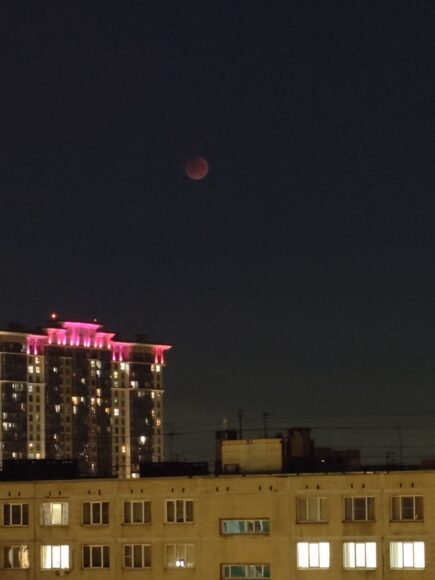 В телеграм-канале Лаборатории, а также в других пабликах петербуржцы вовсю делятся снимками, запечатлевшими багровую кукурузную Луну.