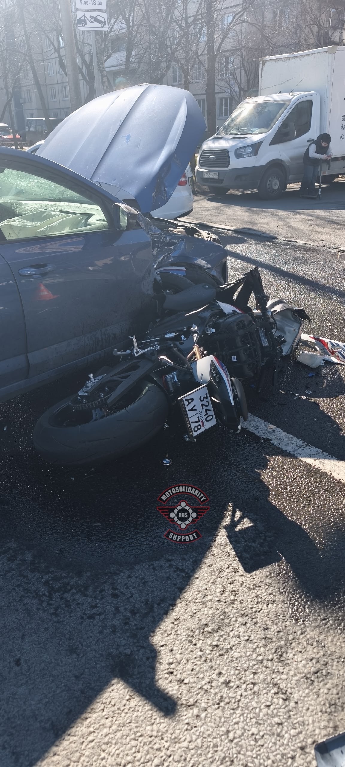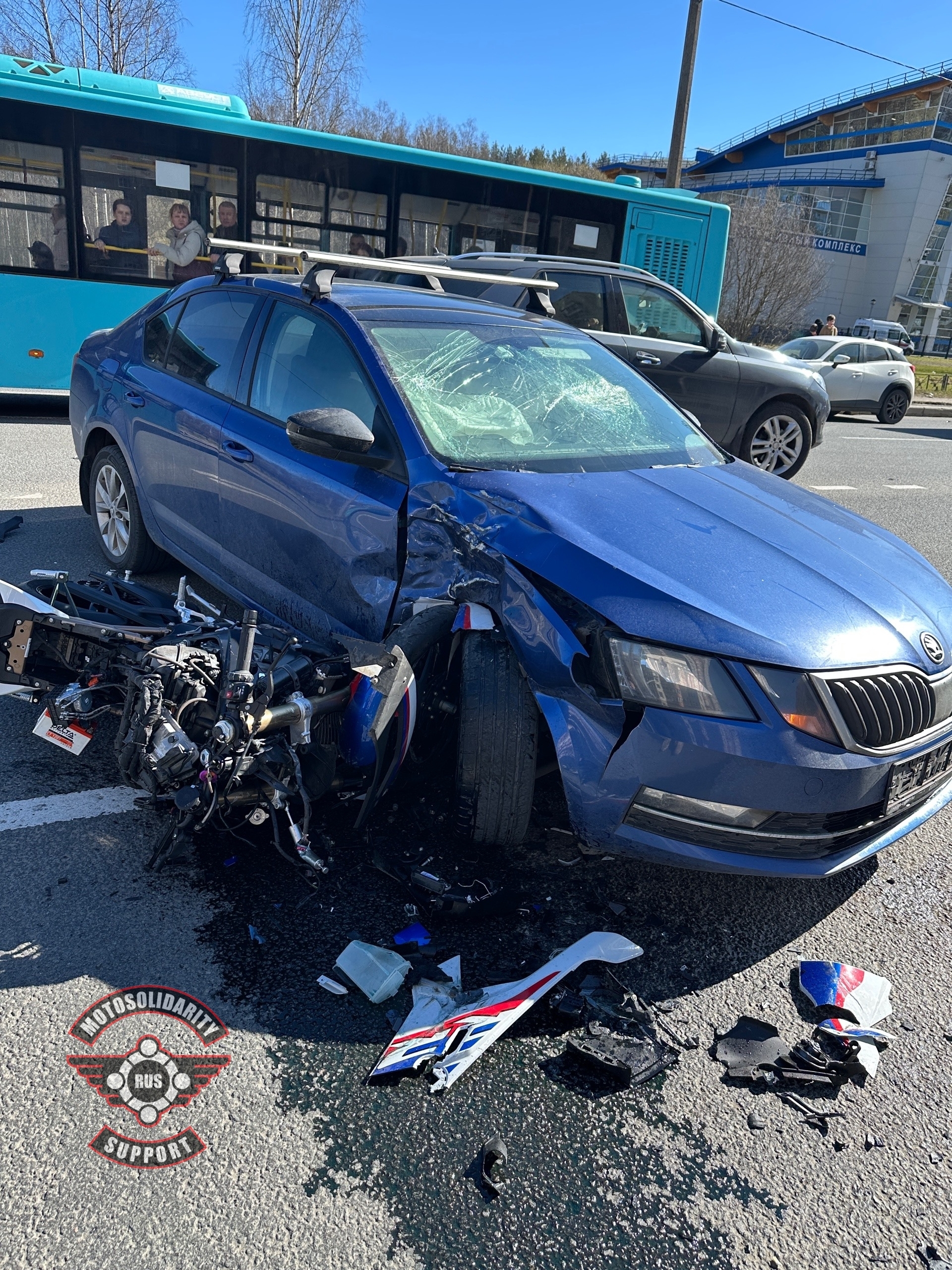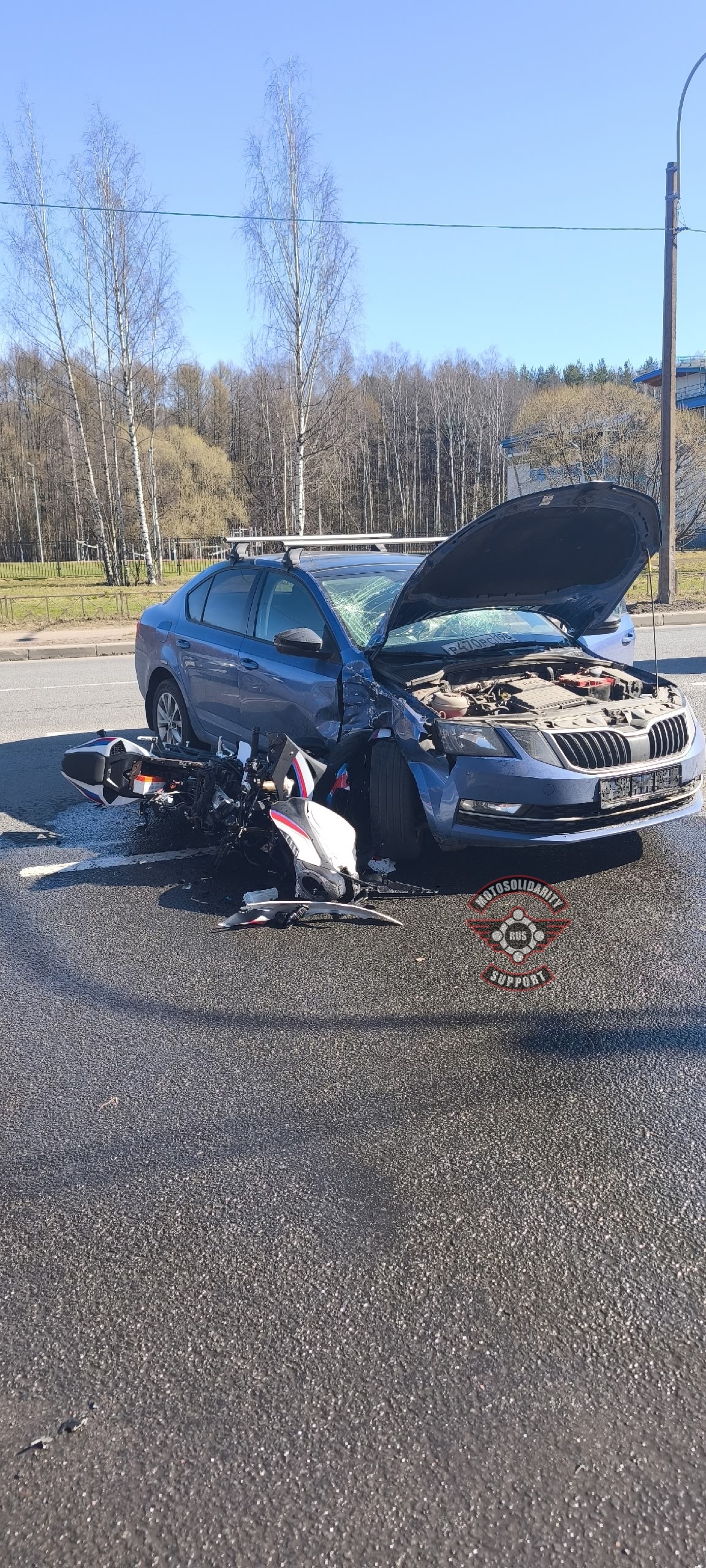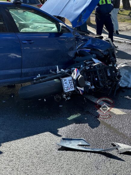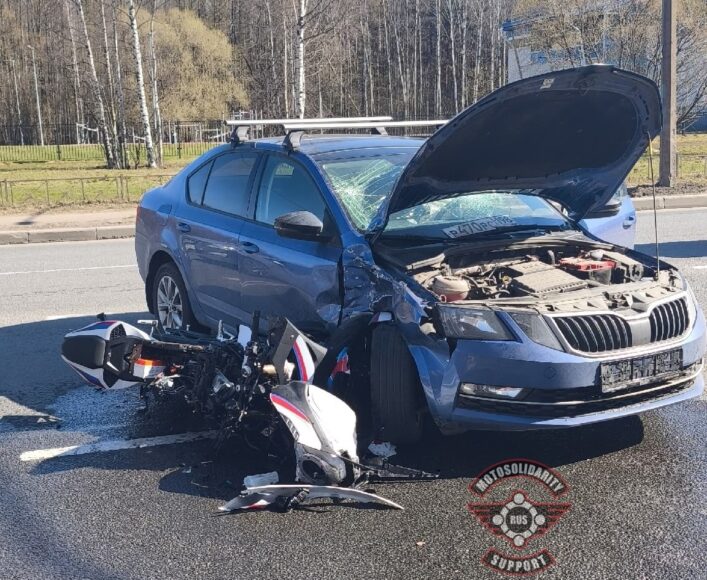 Как пишут участники сообщества «Мотосолидарность» ВКонтакте, байкер двигался прямо, а водитель попутного автомобиля, ехавшего впереди от него, начал то ли разворачиваться, то ли поворачивать во двор. Мотоцикл ударил его в бок.