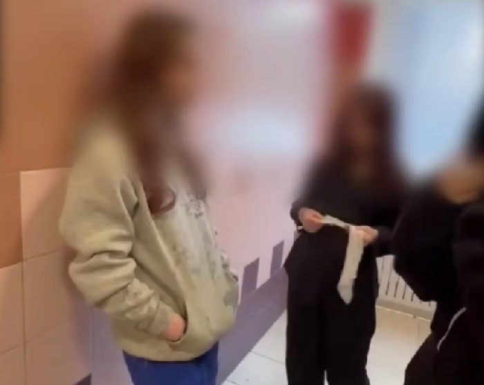 Девочки били одноклассницу тряпками, махали ножницами у нее перед лицом, выливали на нее воду, душили, осыпали бранью. Все это продолжалось около четверти часа: оригинальное видео длится 11 с половиной минут.