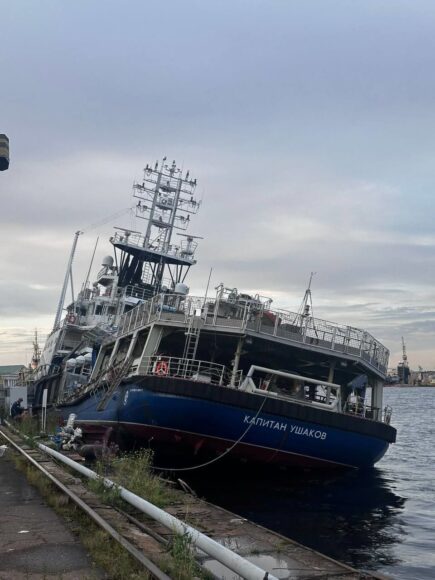 Буксир «Капитан Ушаков» был спущен на воду в 2022 году в Ярославле. Длина судна – 69,75 метра, ширина – 15 метров, водоизмещение – 3200 тонн.