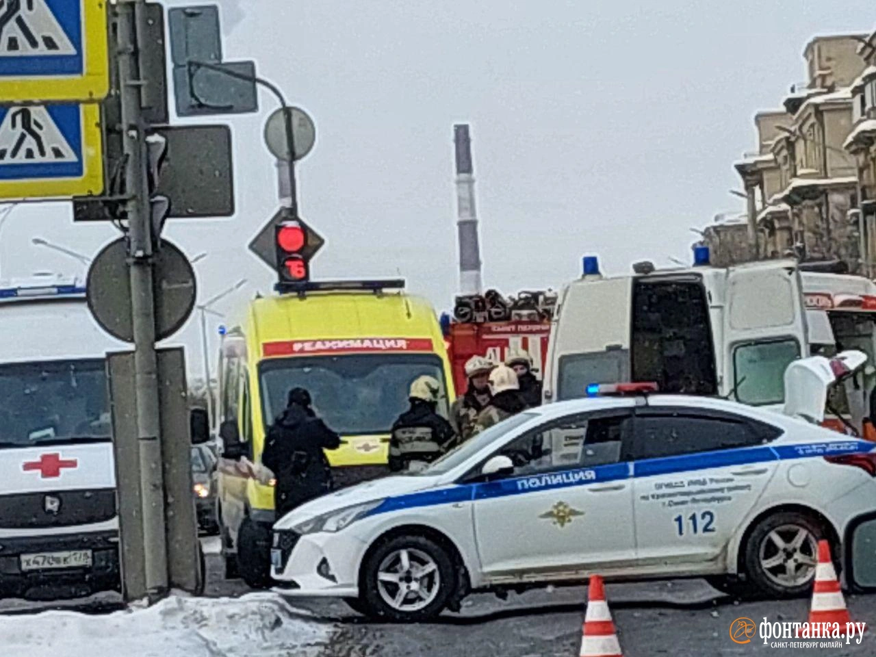 «Было возгорание». В аварии «скорой» на Малоохтинской набережной травмировались два фельдшера. У медицинского автомобиля, который вез маму и дочь, пострадавших в другой аварии, почти снесло переднюю часть