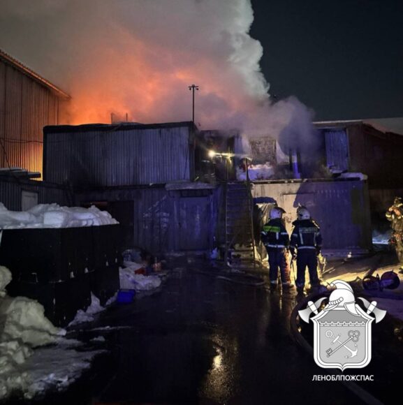 Крупный пожар тушили вечером 31 января на границе Санкт-Петербурга и Всеволожского района Ленинградской области.
