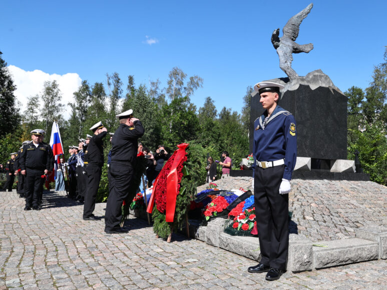 Сегодня в Николо-Богоявленском морском соборе на Никольской площади отслужили панихиду по погибшим морякам, а на Серафимовском кладбище, где похоронены 32 из них, прошла торжественно-траурная церемония. В ней приняли участие Главнокомандующий ВМФ России адмирал Александр Моисеев, руководители Смольного, родственники погибших.