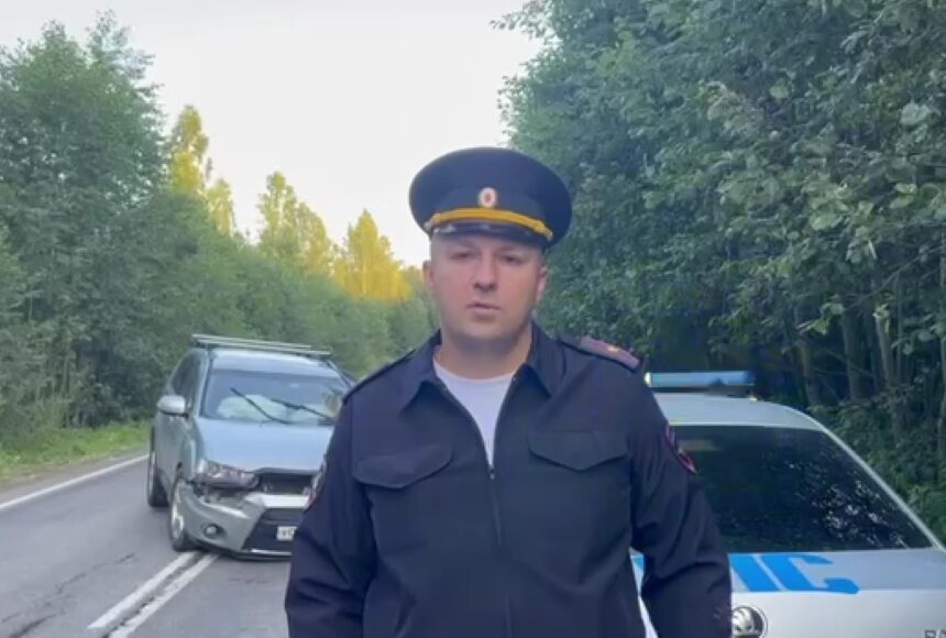 Врио начальника отдела Госавтоинспекции УМВД России «Гатчинское» майор полиции Алексей Александров. Видео: Управление ГАИ по СПб и ЛО
