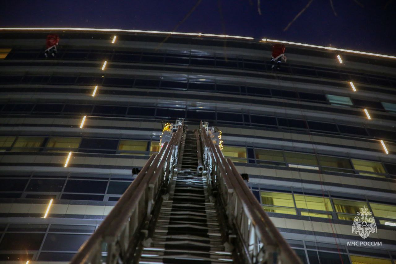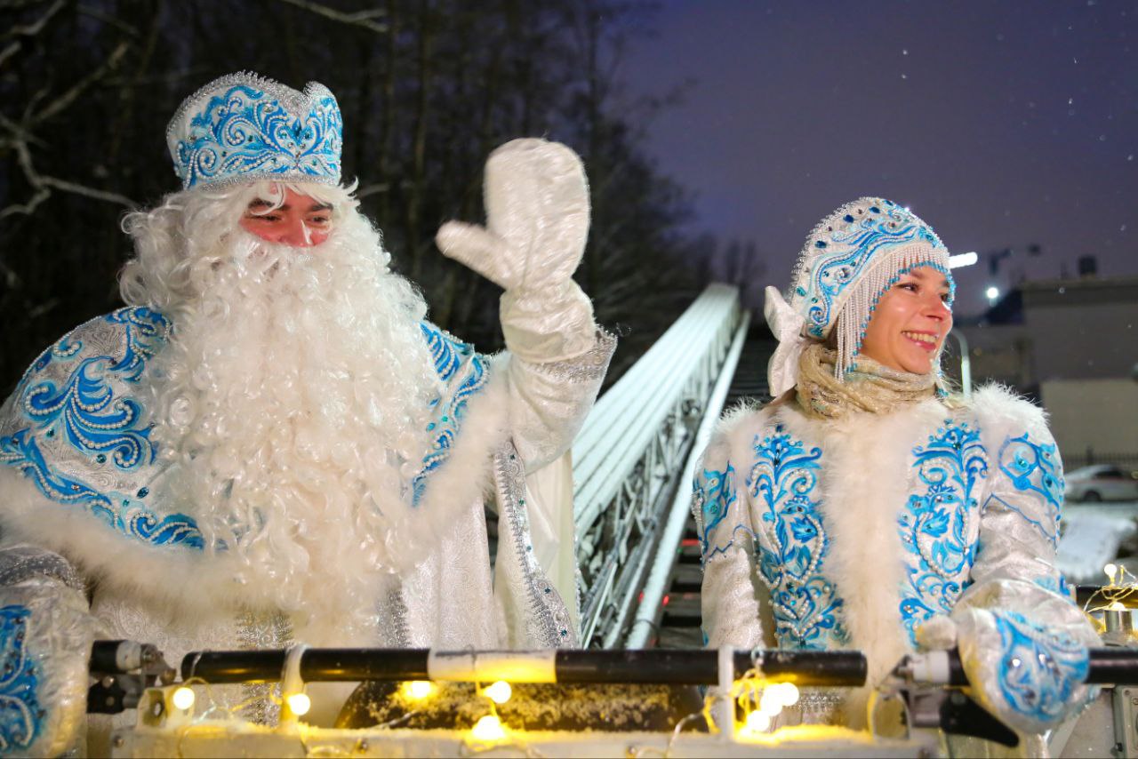 Странную картину могли наблюдать прохожие на Коломяжском проспекте. Возле Детского лечебно-реабилитационного комплекса НМИЦ имени В.А. Алмазова стояла пожарная спецтехника. К дому приставили огромную лестницу с люлькой, в которой стояли Дед Мороз со Снегурочкой.