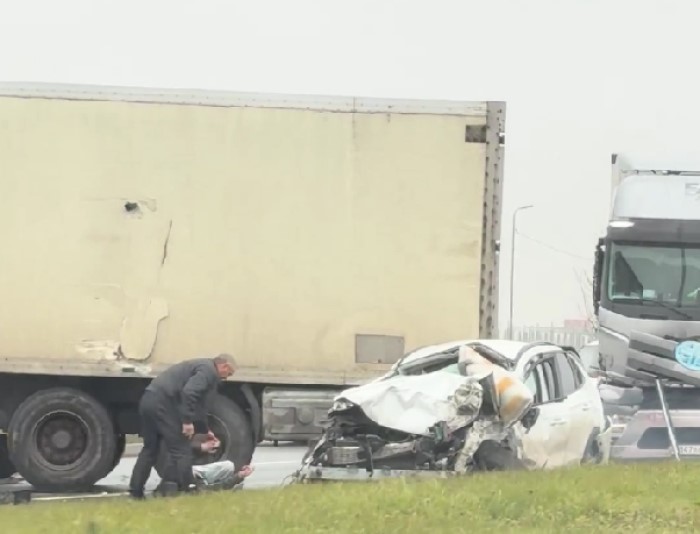 Серьезная авария с участием двух грузовых и одного легкового автомобилей произошла утром 25 октября в Колпинском районе Петербурга.