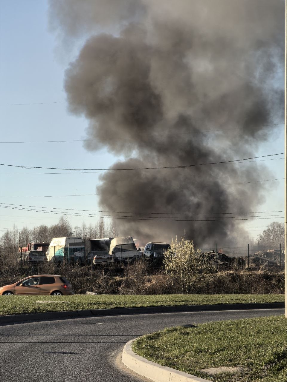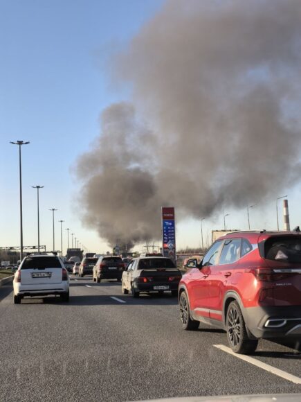 Клубы дыма начали подниматься из промзоны возле ТЭЦ на Софийской улице около половины шестого вечера 2 апреля – об этом сообщали в соцсетях жители Шушар и Петро-Славянки, а также водители, оказавшиеся в это время в районе Софийской развязки КАД.