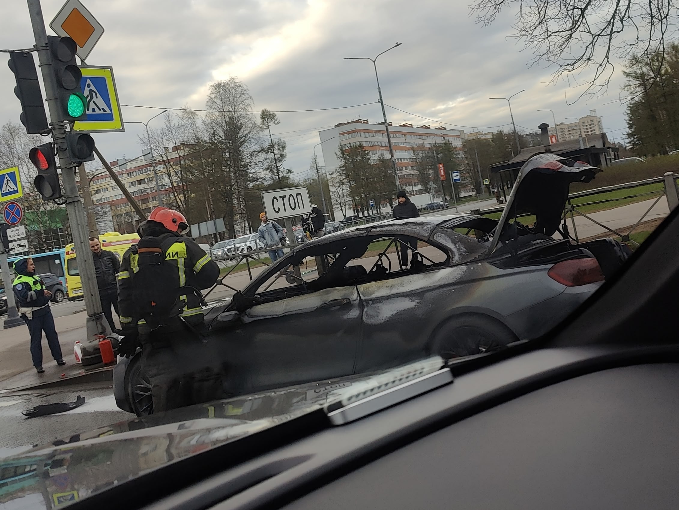 Иномарка сгорела вечером 23 апреля в Красносельском районе Петербурга.