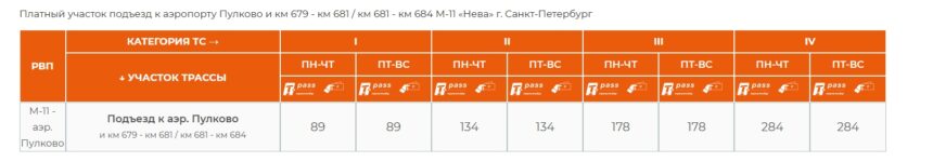 Проезд по участку от новой развязки до КАД – платный. Как выяснил «Мегаполис», его стоимость не зависит от наличия транспондера и дней недели – только от категории транспортного средства. Для легковушек и мотоциклов она составляет 89 рублей.