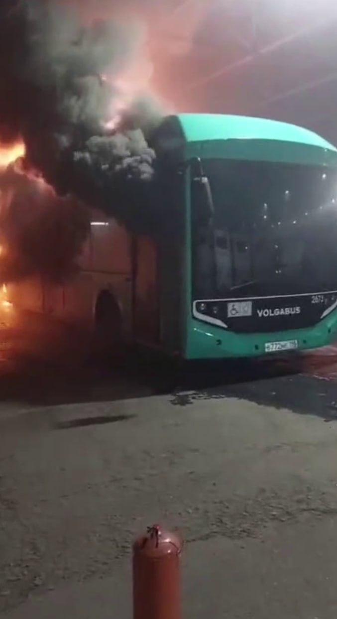 Пожар произошел в Автобусном парке №2, который находится на Автобусной улице. В соцсетях знатоки распознали марку и модель полыхавшего транспортного средства – «Волгобас 5270Е».