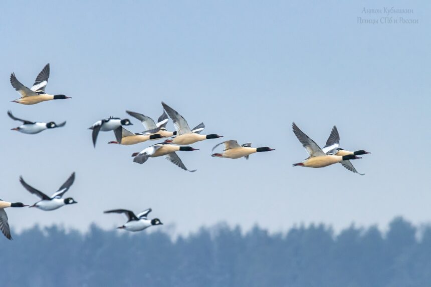 В акватории Финского залива в Санкт-Петербурге зимует стая Больших крохалей. Их 3 января заметил и сделал несколько снимков этих птиц фотограф-натуралист Антон Кубышкин.