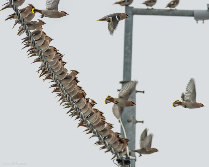 Армада свиристелей прилетала в одно и то же место в течение нескольких дней, лакомиться ягодами. Антон Кубышкин отметил, что раньше замечал лишь небольшие стаи этих птиц в городе.