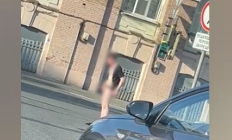 Очевидцы сняли 8 июля гражданина, который стоял на съезде с Мало-Петровского моста. На нем была лишь разодранная футболка и кроссовки. Остальная одежда лежала у ног.