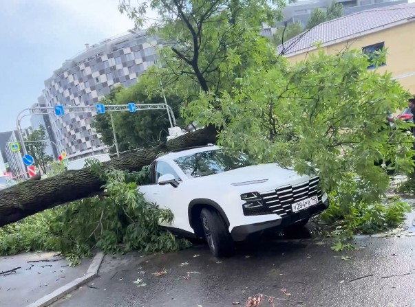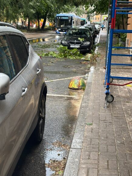 В том же районе, на Ординарной улице, рухнувшее дерево придавило автомобиль «БМВ».