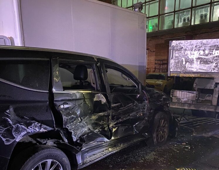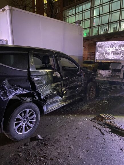 Водитель грузового автомобиля устроил массовую аварию в Калининском районе Петербурга, съехав с проезжей части на парковку.