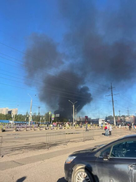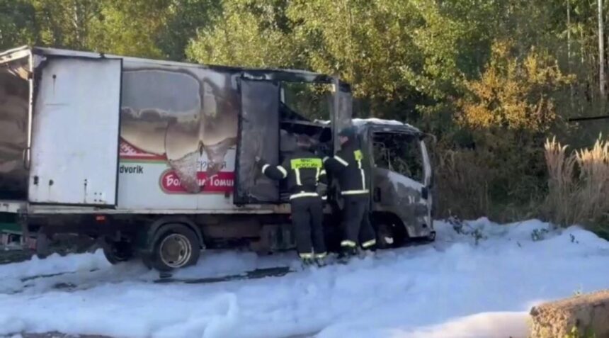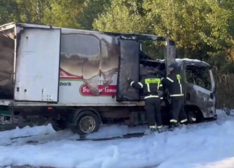 Оказалось, это был грузовик, внутри которого, по данным городского ГУ МЧС, происходило горение по всей площади.