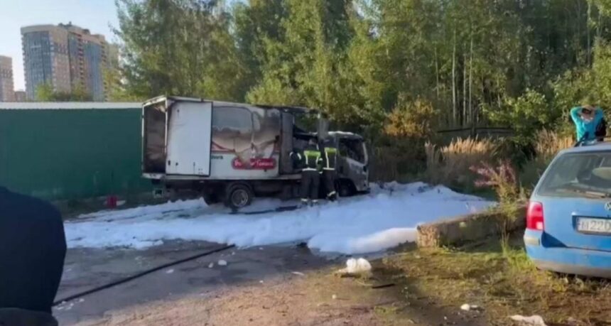 Грузовой автомобиль тушили вечером 1 сентября на севере Петербурга.