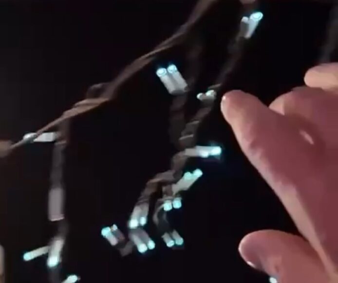 Герой незамысловатого ролика, голос которого слышен за кадром – прохожий, который, увидев порванную гирлянду на Биржевом мосту, решил исправить ситуацию.