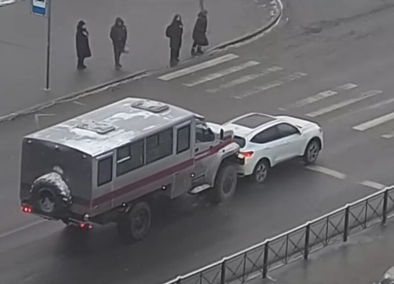 Легковушка остановилась перед перекрестком с улицей Юных Пионеров, поскольку на светофоре загорелся красный свет. Водитель машины силовиков, видимо, тормозить не планировал, поэтому не успел остановить грузовик и совершил наезд на попутчика.