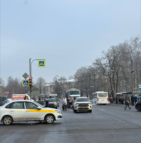 Грузовик «Урал» наехал на белый кроссовер марки «Хавал» на проспекте Ленина напротив Троицкой церкви.
