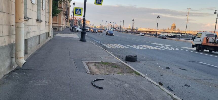 Некоторые разбитые автомобили оказались у Дома Эйлера, а часть пострадавших машин стоят у дома №17 по набережной. Один из очевидцев утверждает. что пострадали семь авто, причем в последнюю - "Мазду", "Инфинити" врезался уже без переднего колеса.