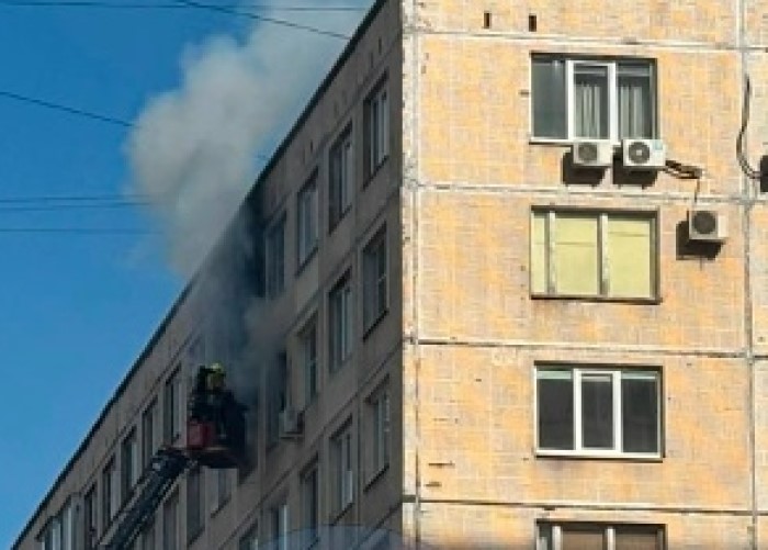 Дым повалил из окон одного из верхних этажей дома №27к1 на проспекте Художников около часа дня.