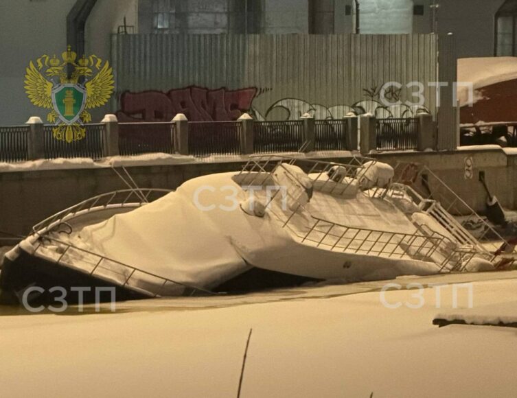 Яхта примерно наполовину погрузилась в проталину. Судя по фото, опубликованным пресс-службой Северо-Западной транспортной прокуратуры, это произошло на Малой Неве у набережной Макарова, в районе Серного острова, где расположены причал и стоянка судов яхт-клуба.