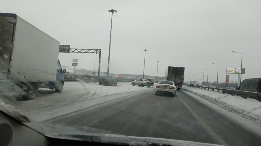 Затор длиною в несколько километров возник вечером 9 февраля на внутренней стороне Кольцевой автодороги во Всеволожском районе Ленобласти после серии ДТП.