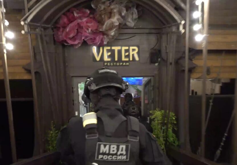 Силовики с собаками нагрянули в разгар веселья в фешенебельный ресторан Veter на паруснике «Летучий Голландец», пришвартованном у Мытнинской набережной.