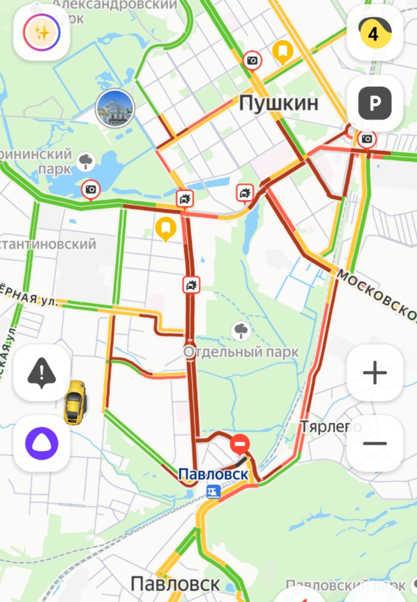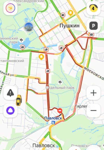 По данным сервиса «Яндекс.Пробки», даже сейчас, спустя больше трех часов после аварии, заторы между Пушкиным и Павловским сохраняются.