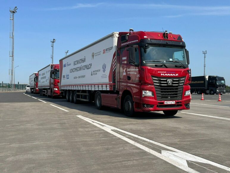 КамАЗы будут курсировать между логистическими терминалами Москвы и Петербурга, которые находятся за границами обоих городов. Длина маршрута составляет 650 километров. В сами города грузовики заезжать не будут.