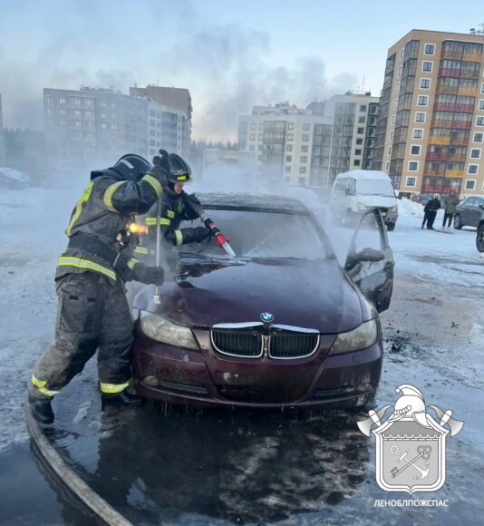 Немецкая машина воспламенилась днем 24 января в поселке городского типа под Петербургом, во Всеволожском районе Ленинградской области.