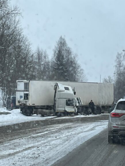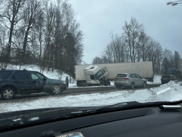 Большие пробки образовались днем 22 февраля на федеральной трассе Р-23 «Псков» в Гатчинском муниципальном округе Ленинградской области. Причиной заторов стала авария с участием большегруза.