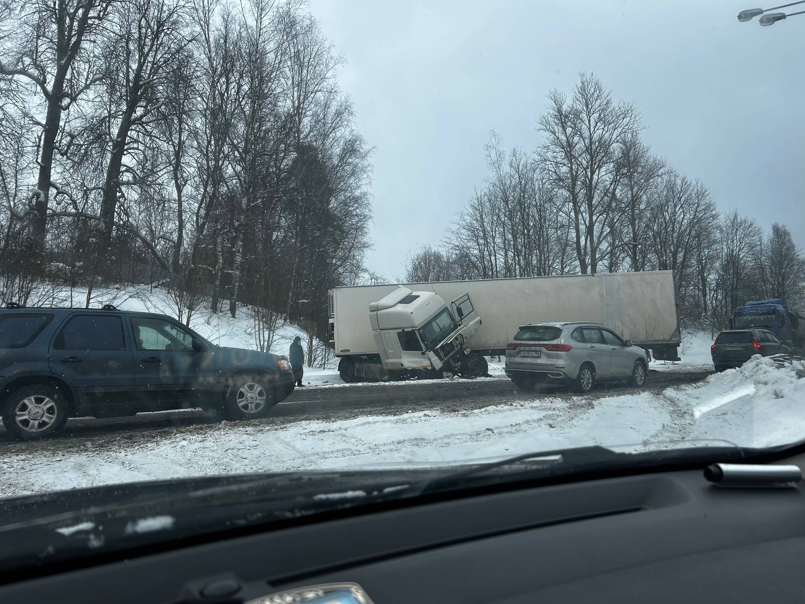 Грузовик занесло около часа дня на 78-м километре автодороги, в селе Рождествено. Как рассказал очевидец в группе «ДТП-ЧП-СПб» ВКонтакте, водитель фуры ехал со скоростью 60–70 километров в час.