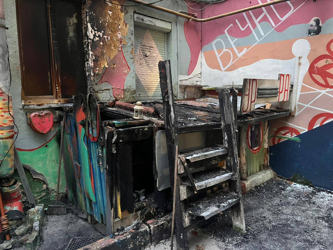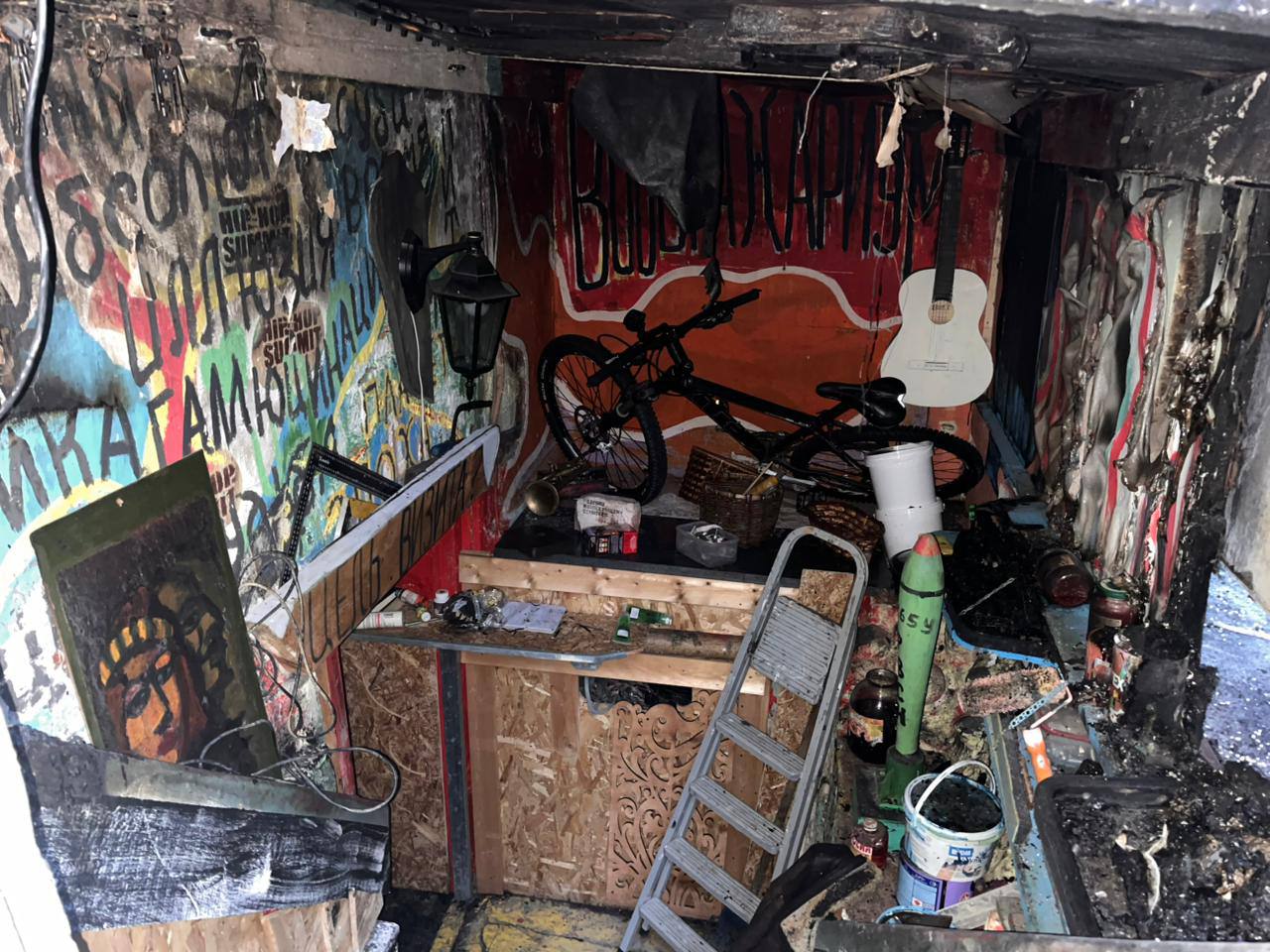 Пожар в «предбаннике» его подвала произошел 26 ноября около 23:50. Художнику удалось выбежать на улицу, вместе с соседями он потушил пламя своими силами, получив при этом ожог руки.