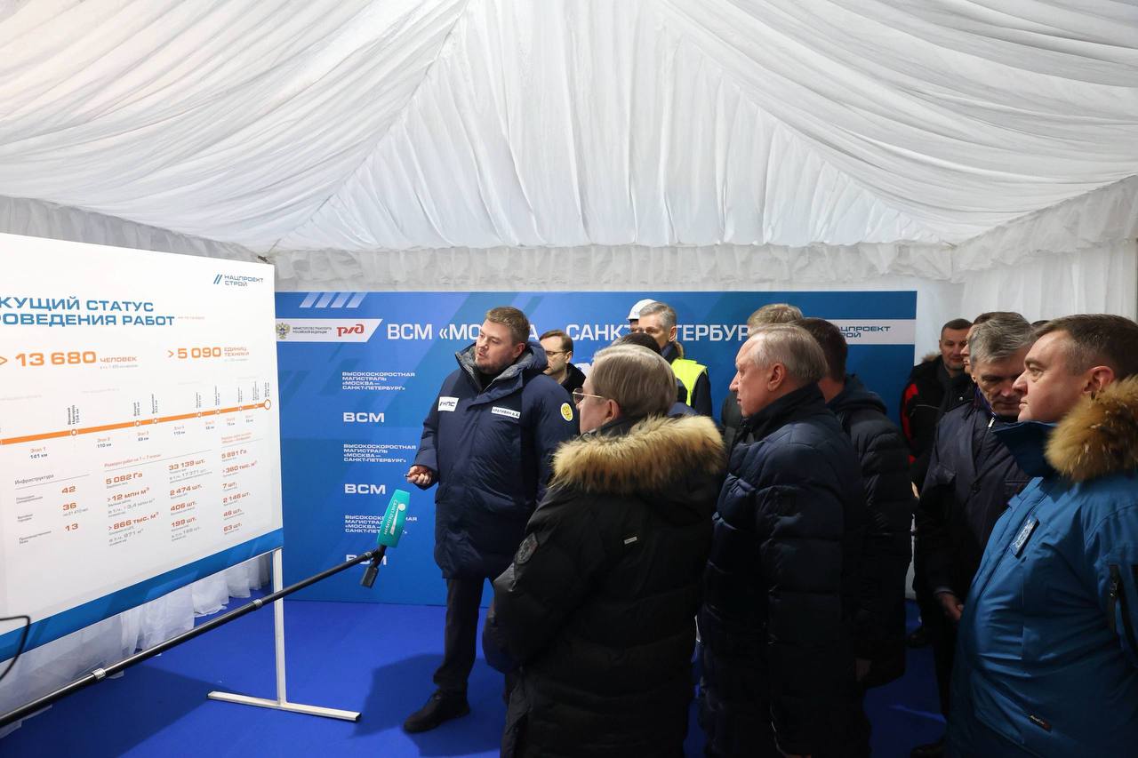 В ходе мероприятия проверили ход работ по строительству железнодорожной развязки на пятом километре – одном из ключевых и наиболее сложных элементов входа Высокоскоростной магистрали в город. Этот объект позволит перевести электрички пригородного сообщения с Московского вокзала на новую станцию Волковская.