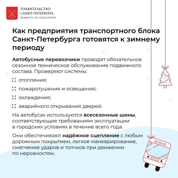 Все перевозчики проводят сезонное техническое обслуживание подвижного состава – ведут проверку состояния систем отопления, освещения, безопасности и связи с водителем. Кроме того, необходимый инструктаж, как действовать при гололеде, тумане и снегопадах, проходят водители.