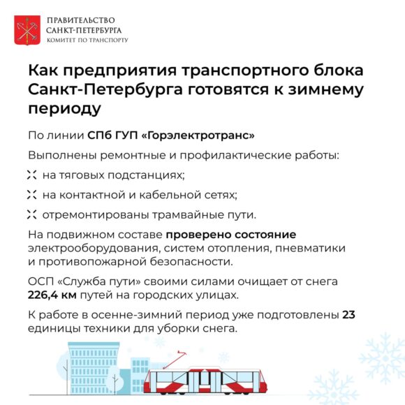 В пресс-службе комитете по транспорту особо подчеркнули, что сезонная подготовка подвижного состава общественного транспорта и инфраструктуры – обязательный элемент системы содержания городского пассажирского транспорта, цель которой – минимизация сбоев в работе, предотвращение аварийных ситуаций, а также – обеспечение комфорта и безопасности пассажиров в сложных погодных условиях.