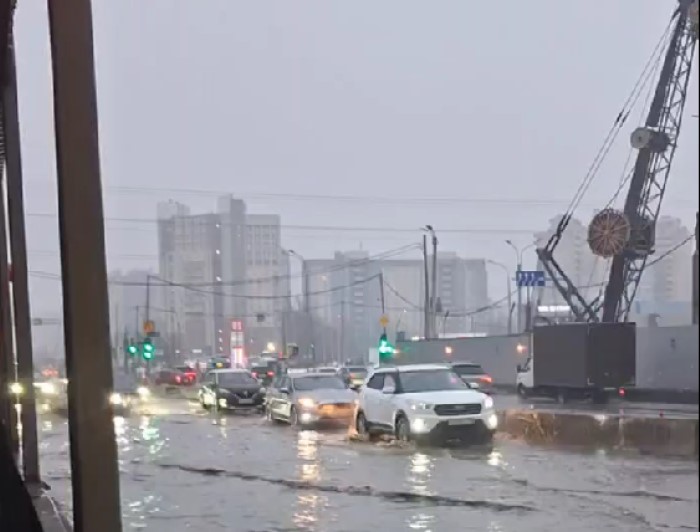 Холодная вода затопила днем 1 марта оживленную магистраль в Приморском районе Петербурга.