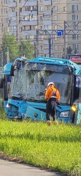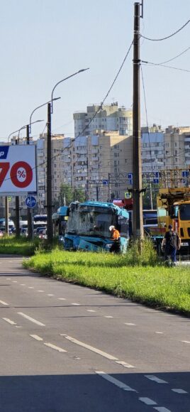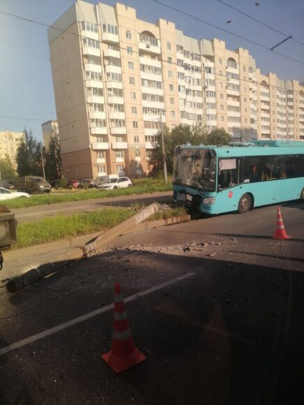 Автобус врезался в столб утром 17 июля в Невском районе Петербурга.