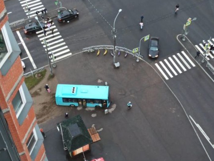 Как рассказали в соцсетях местные жители, лазурный, шедший по кольцевому маршруту №214А, подъезжал к перекрестку по улице Николая Рубцова со стороны проспекта Энгельса. Неожиданно, без видимых причин он изменил траекторию движения и покинул проезжую часть. Автобус пересек газон и остановился на тротуаре.