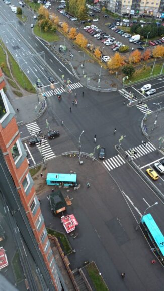 Местом странной аварии стало пересечение улиц Фёдора Абрамова и Николая Рубцова в поселке Парголово, недалеко от станции метро «Парнас».