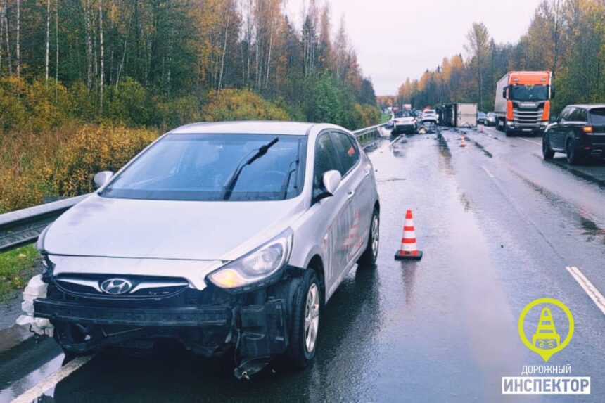 Четыре машины столкнулись, в том числе две – в лоб друг другу, днем 12 октября на федеральной трассе в Волховском районе Ленобласти. В аварии есть пострадавшие.