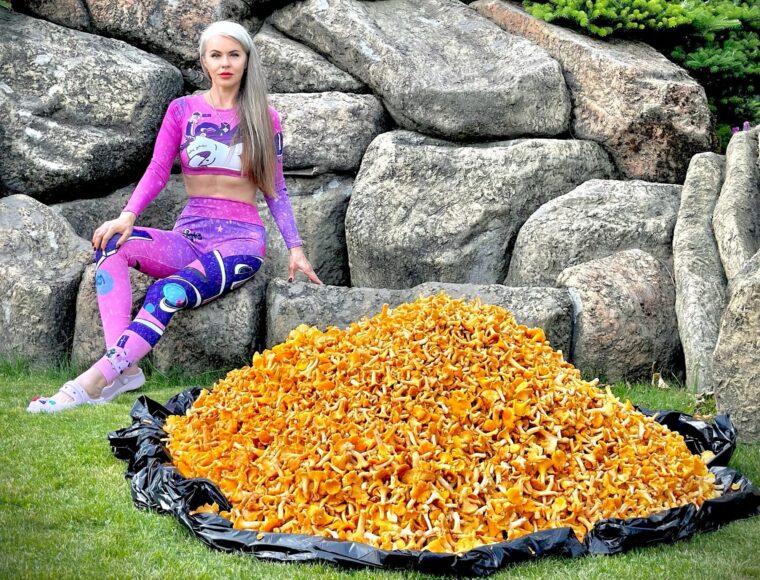 «Пока любители собирают лисички тысячами, профессионалы выносят их с леса миллионами», - подписала свои фото эффектная блондинка, позирующая на фоне грибов.