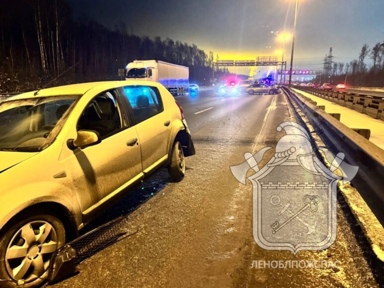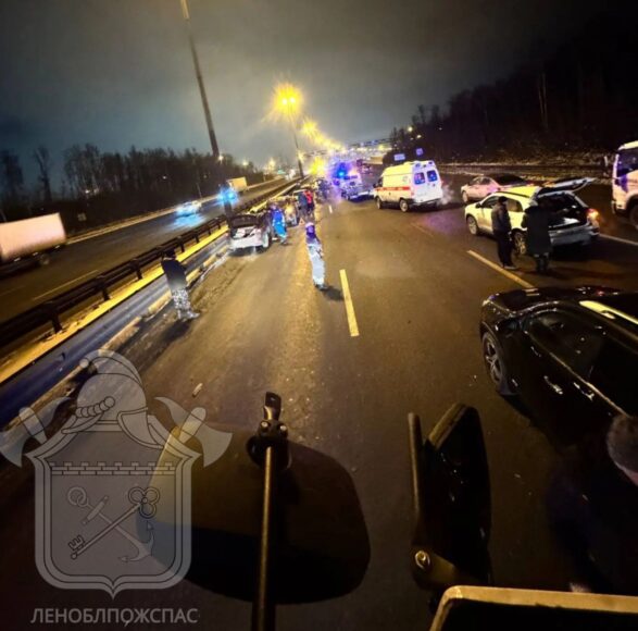 ДТП произошло вчера вечером. Сообщение о массовой аварии на внешнем кольце КАД, в паре сотен метров от съезда на Мурманское шоссе, спасатели получили в 20:38. Оказалось, что между собой столкнулись аж восемь машин, которые ехали в попутном направлении, рассказала пресс-служба «Леноблпожспаса».