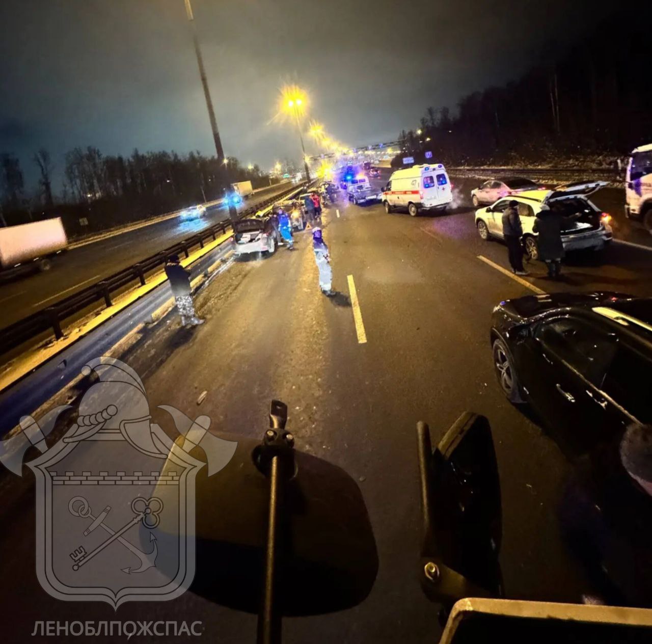 На место аварии выезжал личный состав 150-й пожарной части Всеволожского отряда «Леноблпожспаса». Причина аварии к этой минуте неизвестна, это предстоит выяснять сотрудникам Госавтоинспекции.
