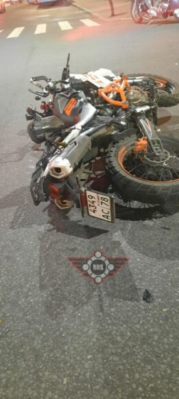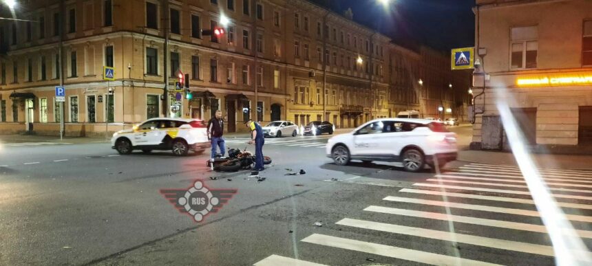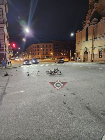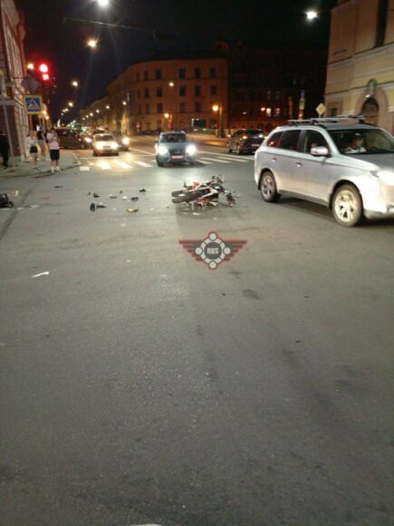 Авария произошла в ночь на 13 июля на перекрестке проспектов Лермонтовского и Римского-Корсакова. Легковая машина «Эксид» столкнулась с мотоциклом марки Fuego Tekken.
