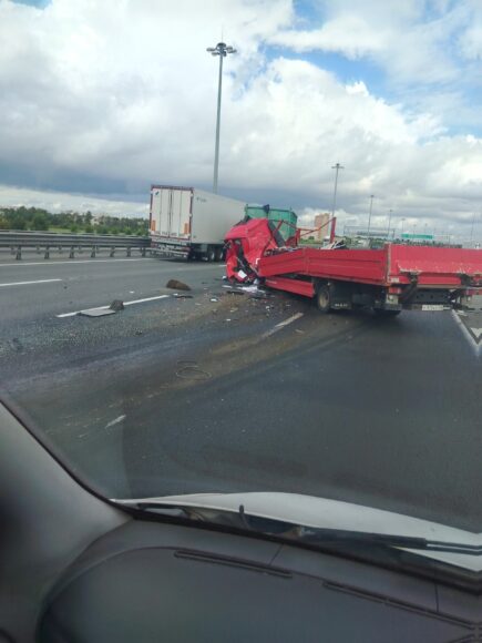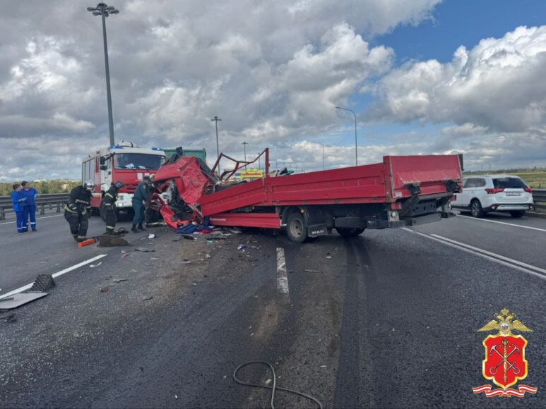 По данным ГУ МВД по Петербургу и Ленобласти, около 14:00 на 76-м километре внешнего кольца КАД в Красносельском районе города грузовик «Ман» наехал на стоявший во втором ряду «КАМАЗ».